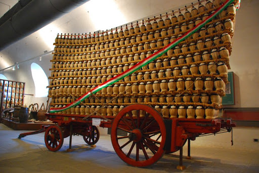 А перевозили кьянти на больших повозках и в большом количестве (см. фото). Также такая форма позволяла удобно ставить бутылку на стол.